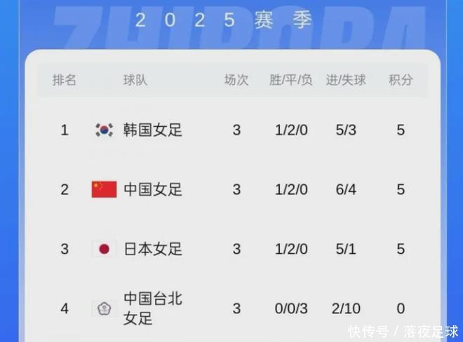 值得一提的是,中日韩三队同积5分的"连环套"最终靠进球数决输赢(韩国3球>中国2球>日本1球),这也侧面反馈了中国女足在迫切端的"完结短板":相同是平局,韩国能2-0赢球,日本能1-1逼平韩国,中国女足却耐久"雷声大,雨点小"。